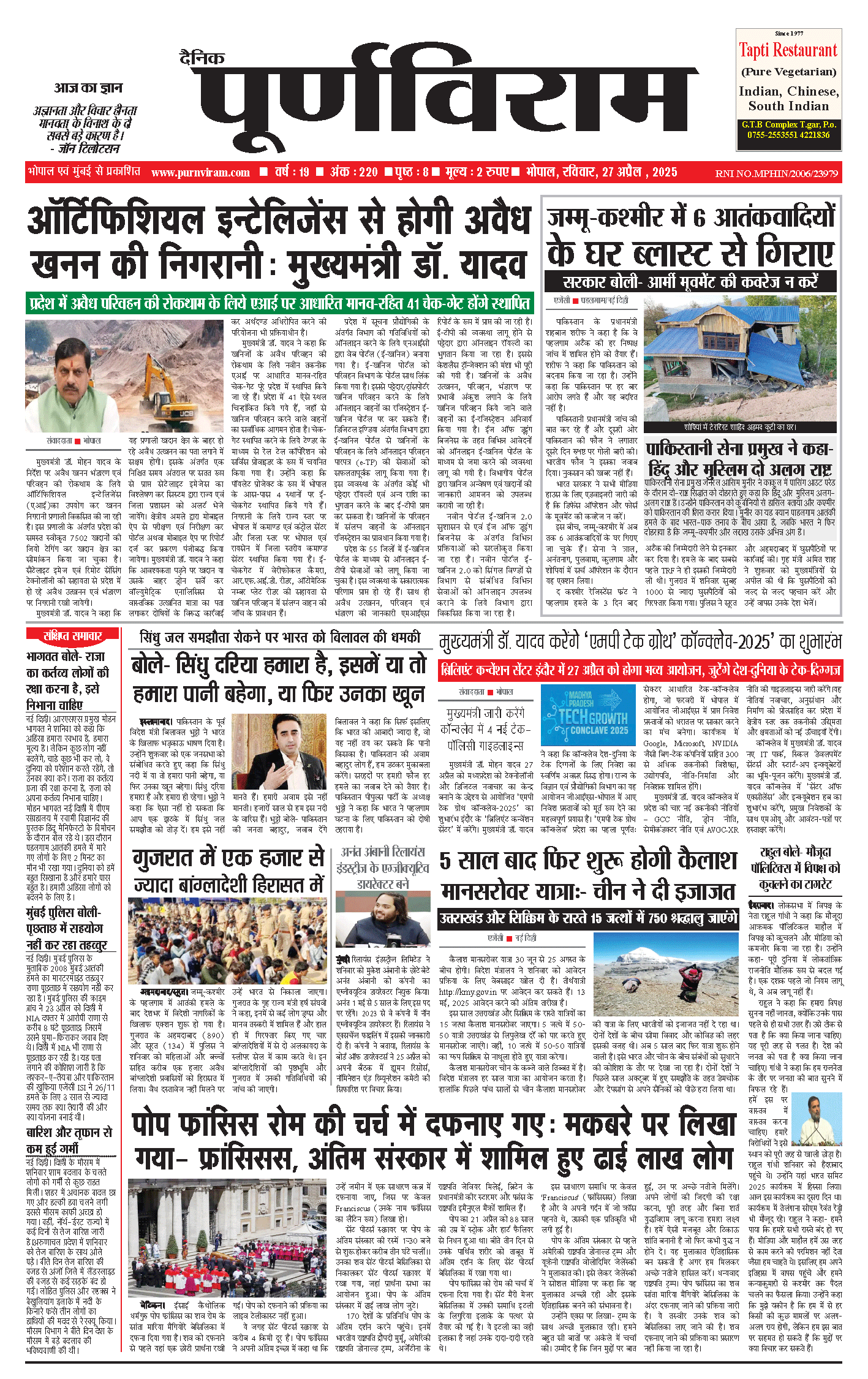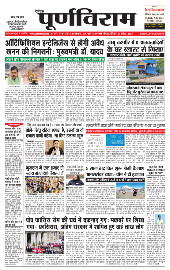 Purnviram Bhopal Edition 27 April 2025 Purnviram Bhopal Edition 27 April 2025 Go To Page: Page 1Page 2Page 3Page 4Page 5Page 6Page 7Page 8 × Purnviram Bhopal Edition 27 April 2025 12345678 << First << 1 2 3 >> Last >> 12345678