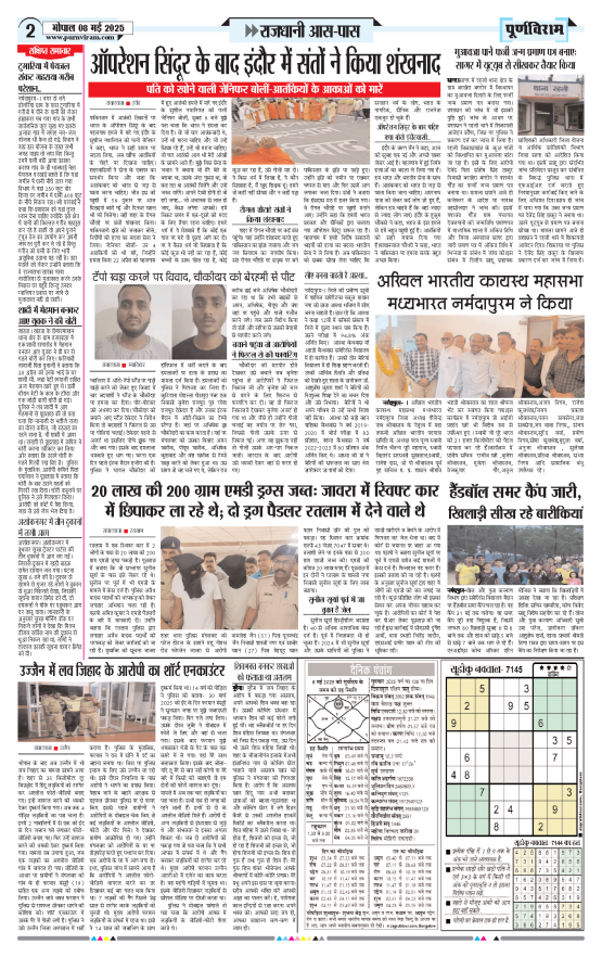 Purnviram Bhopal Edition 8 May 2025 Page: 2 Purnviram Bhopal Edition 8 May 2025 Go To Page: Page 1Page 2Page 3Page 4Page 5Page 6Page 7Page 8 × Purnviram Bhopal Edition 8 May 2025 12345678 << First << 1 2 3 >> Last >> 12345678