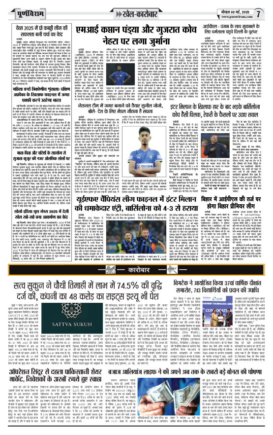 Purnviram Bhopal Edition 8 May 2025 Page: 7 Purnviram Bhopal Edition 8 May 2025 Go To Page: Page 1Page 2Page 3Page 4Page 5Page 6Page 7Page 8 × Purnviram Bhopal Edition 8 May 2025 12345678 << First << 6 7 8 >> Last >> 12345678