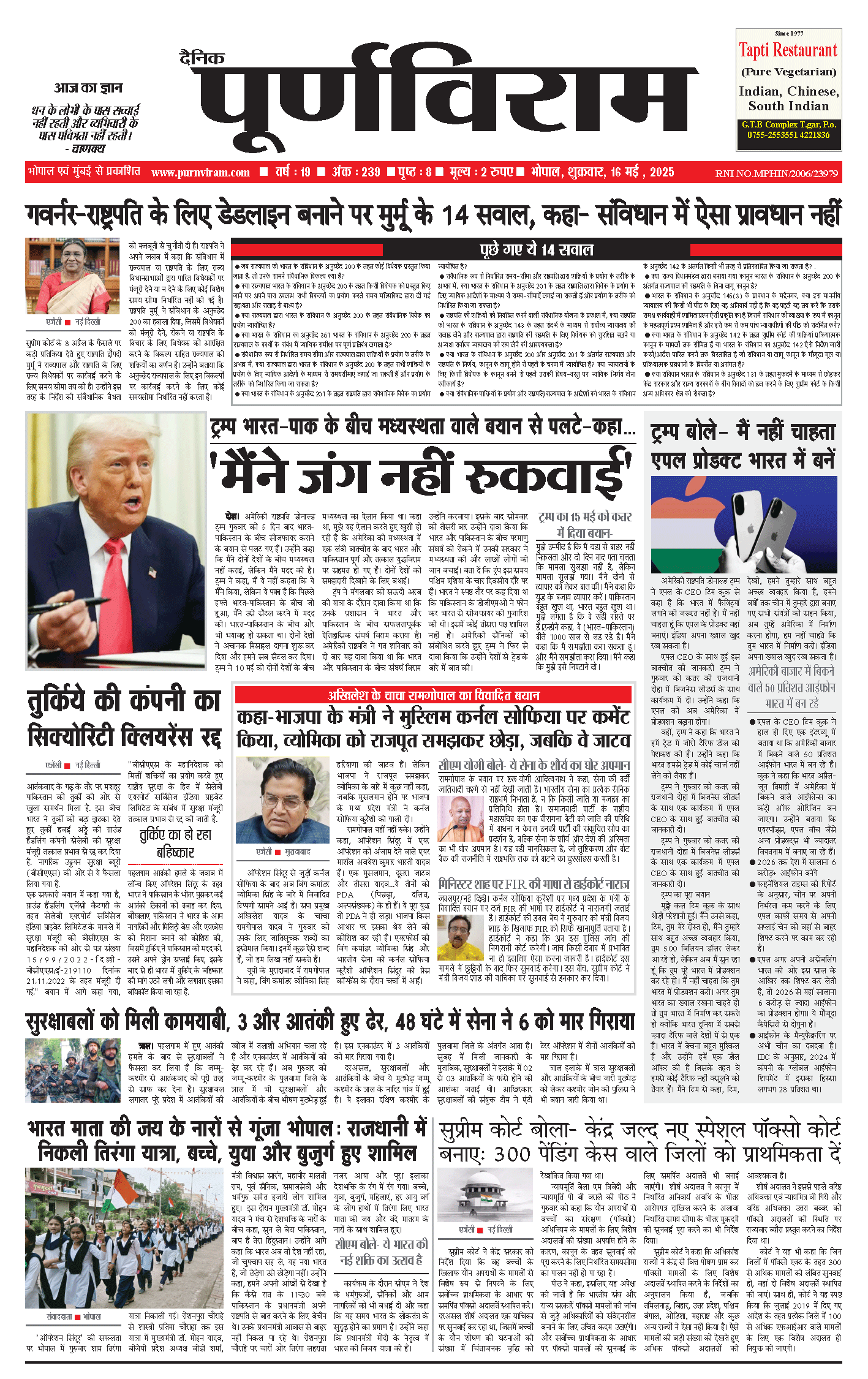 Purnviram Bhopal Edition 16 May 2025