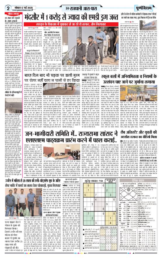 Purnviram Bhopal Edition 17 May 2025 Page: 2 Purnviram Bhopal Edition 17 May 2025 Go To Page: Page 1Page 2Page 3Page 4Page 5Page 6Page 7Page 8 × Purnviram Bhopal Edition 17 May 2025 12345678 << First << 1 2 3 >> Last >> 12345678
