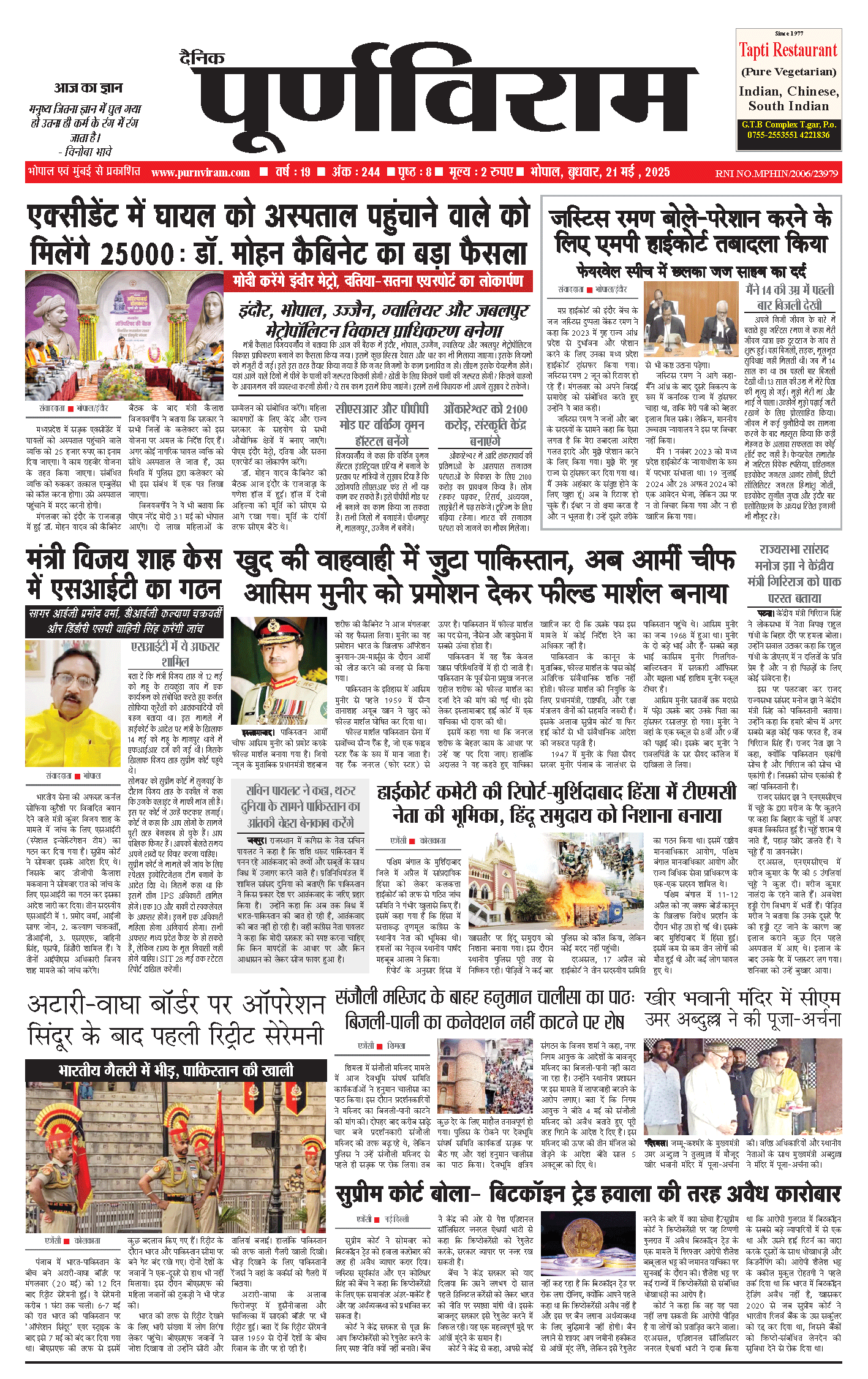 Purnviram Bhopal Edition 21 May 2025 Purnviram Bhopal Edition 21 May 2025 Go To Page: Page 1Page 2Page 3Page 4Page 5Page 6Page 7Page 8 × Purnviram Bhopal Edition 21 May 2025 12345678 << First << 1 2 3 >> Last >> 12345678