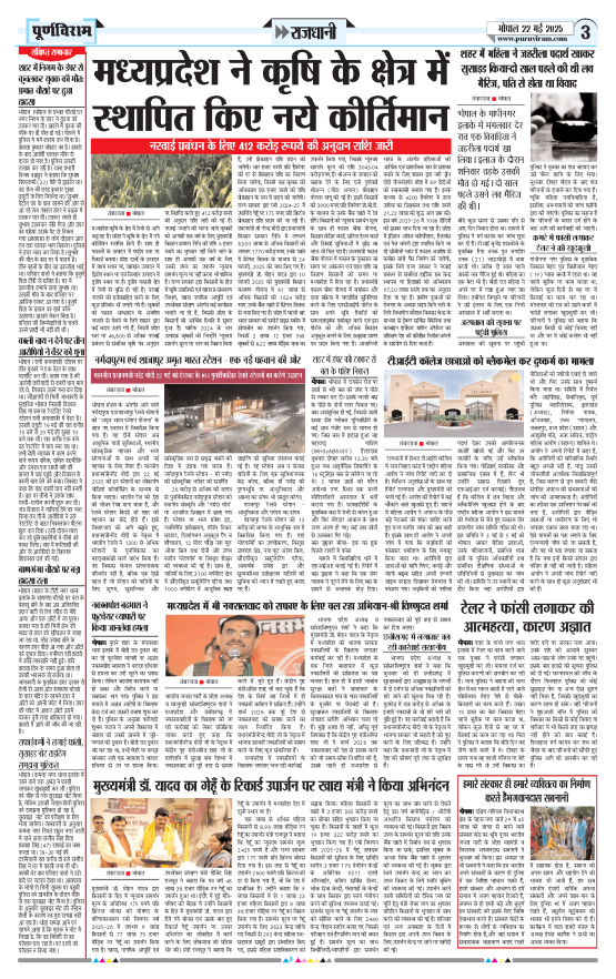 Purnviram Bhopal Edition 22 May 2025 Page: 3 Purnviram Bhopal Edition 22 May 2025 Go To Page: Page 1Page 2Page 3Page 4Page 5Page 6Page 7Page 8 × Purnviram Bhopal Edition 22 May 2025 12345678 << First << 2 3 4 >> Last >> 12345678