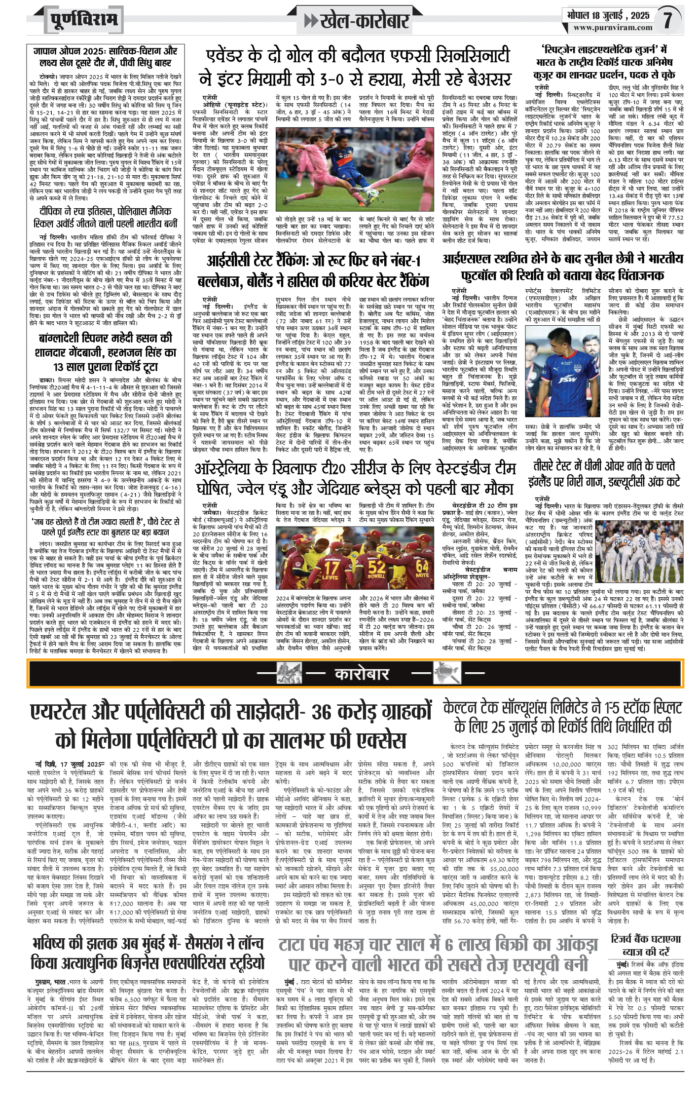 Purnviram Bhopal Edition 18 July 2025 Page: 7
