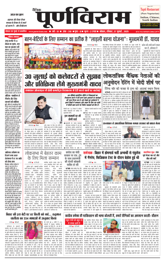 Purnviram Bhopal Edition 27 July 2025 Purnviram Bhopal Edition 27 July 2025 Go To Page: Page 1Page 2Page 3Page 4Page 5Page 6Page 7Page 8 × Purnviram Bhopal Edition 27 July 2025 12345678 << First << 1 2 3 >> Last >> 12345678