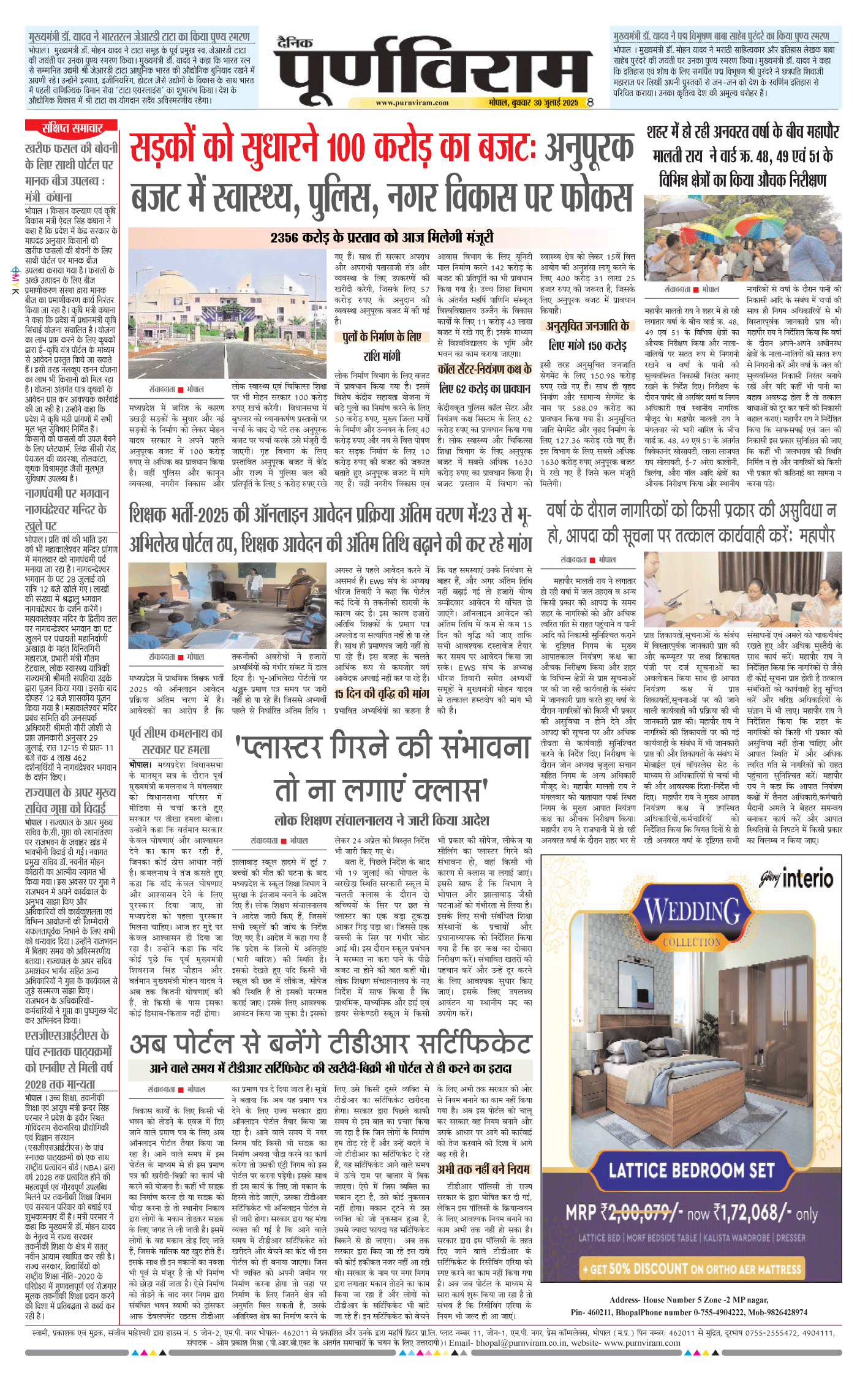 Purnviram Bhopal Edition 30 July 2025 Page: 8