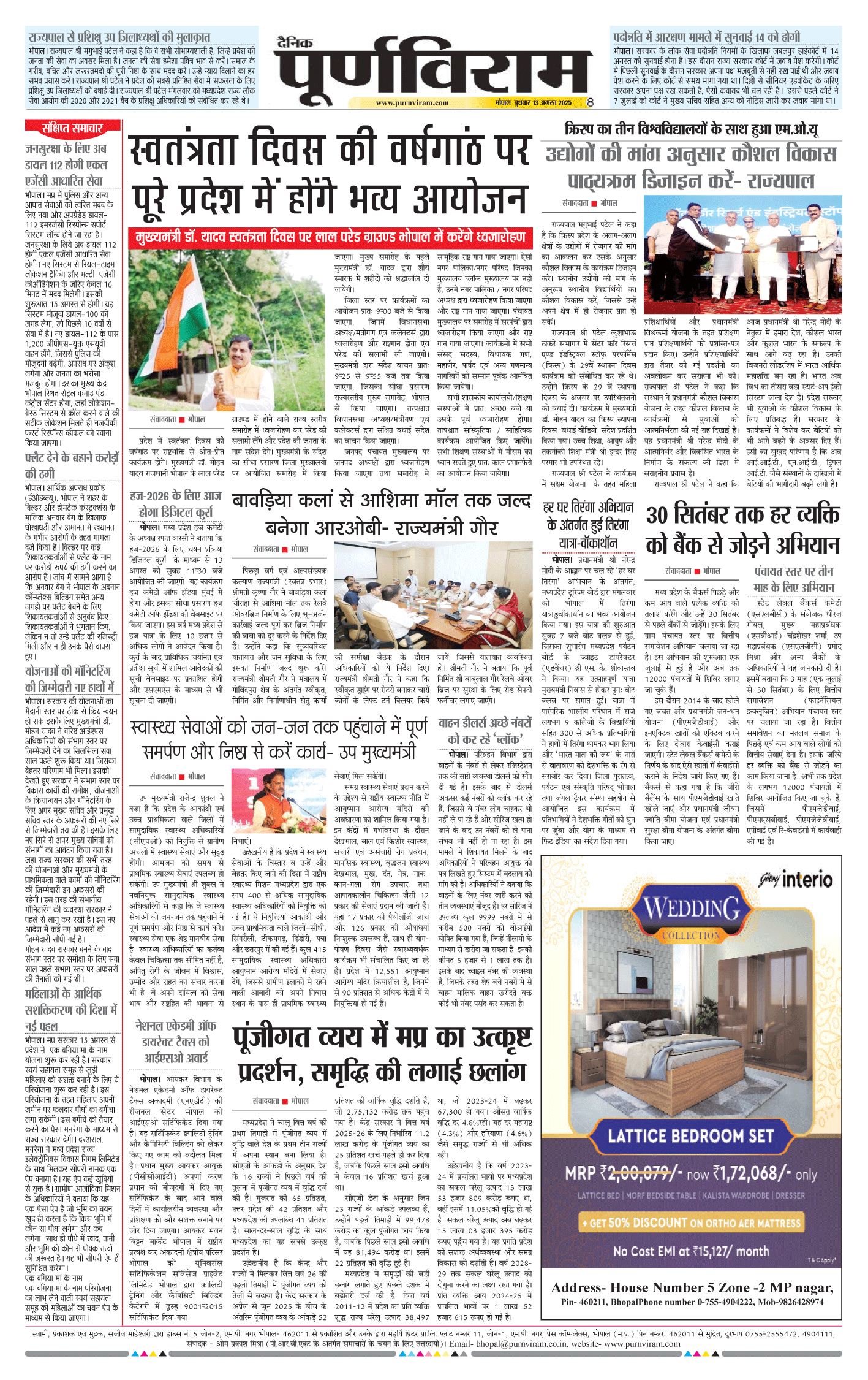 Purnviram Bhopal Edition 13 August 2025 Page: 8
