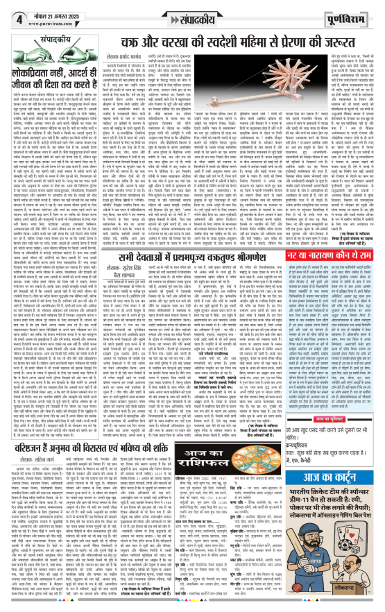 Purnviram Bhopal Edition 21 August 2025 Page: 4