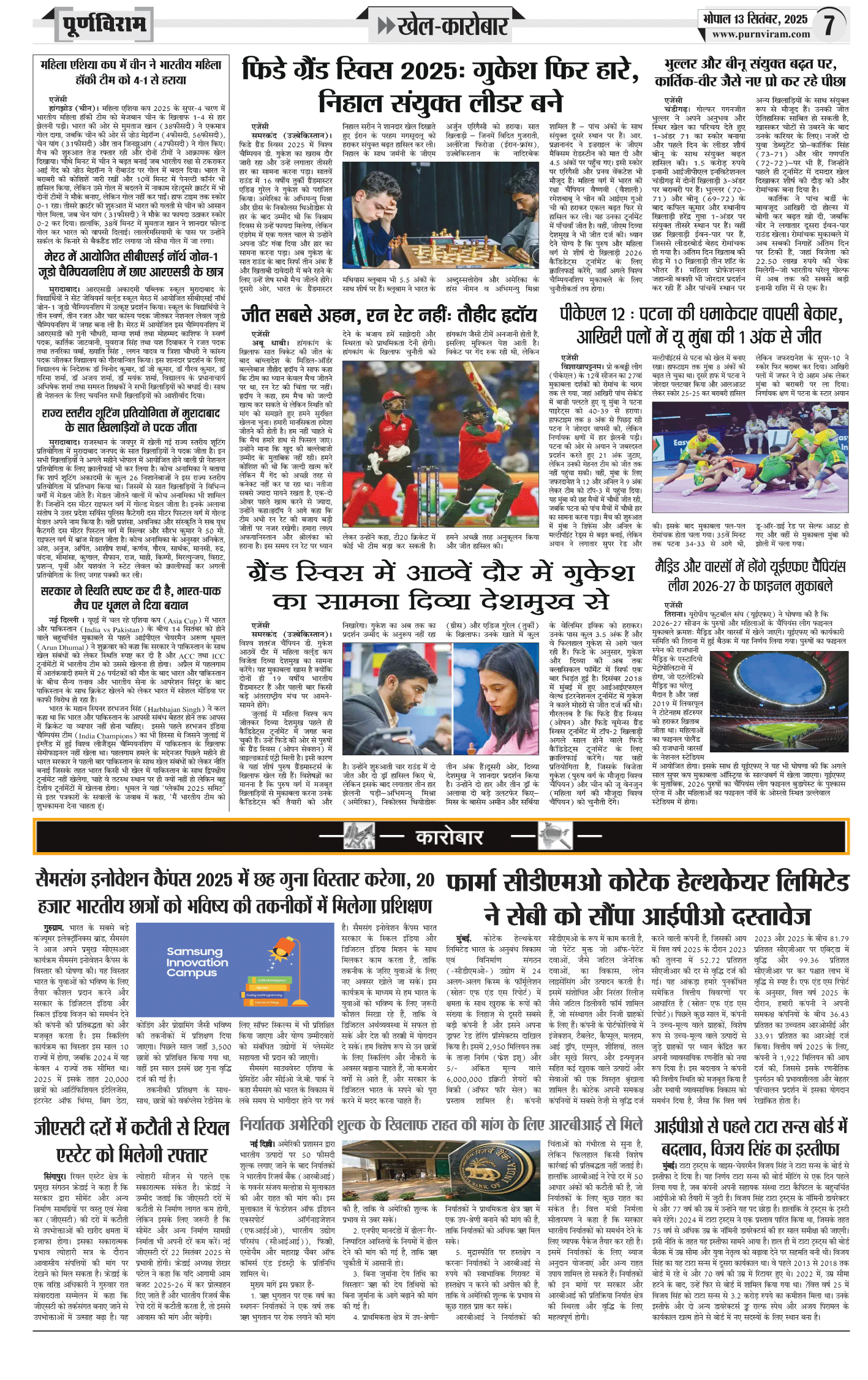 Purnviram Bhopal Edition13 September 2025 Page: 7