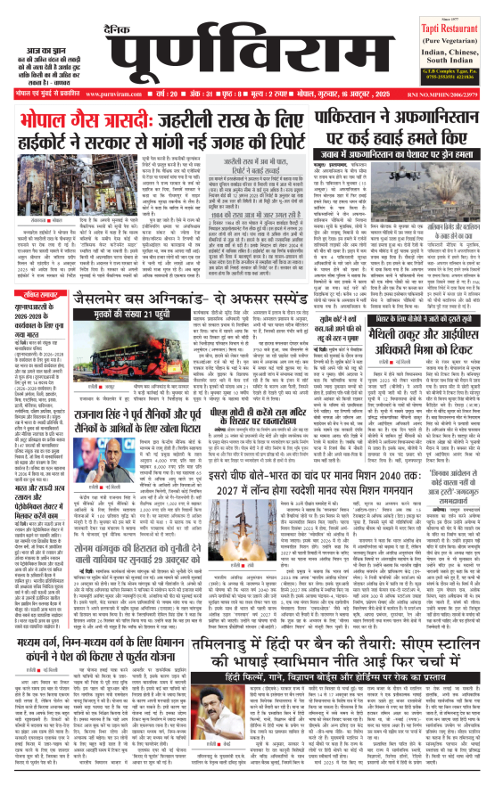 Purnviram Bhopal Edition 16 October 2025 Purnviram Bhopal Edition 16 October 2025 Go To Page: Page 1Page 2Page 3Page 4Page 5Page 6Page 7Page 8 × Purnviram Bhopal Edition 16 October 2025 12345678 << First << 1 2 3 >> Last >> 12345678