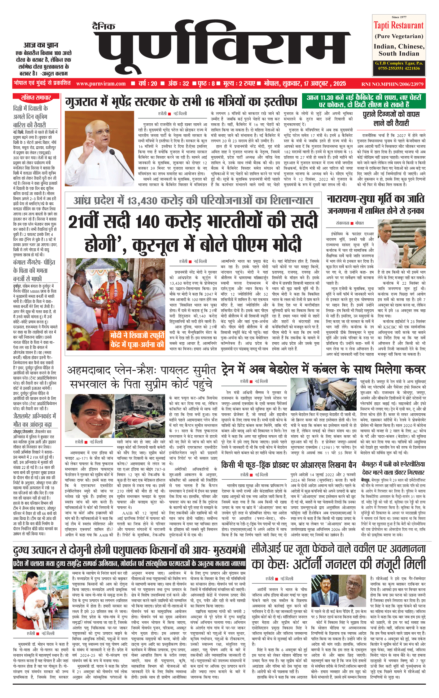Purnviram Bhopal Edition 17 October 2025 Purnviram Bhopal Edition 17 October 2025 Go To Page: Page 1Page 2Page 3Page 4Page 5Page 6Page 7Page 8 × Purnviram Bhopal Edition 17 October 2025 12345678 << First << 1 2 3 >> Last >> 12345678