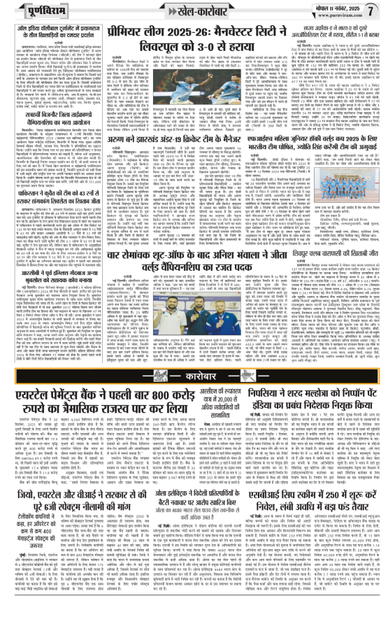 Purnviram Bhopal Edition 11 November Page: 7 Purnviram Bhopal Edition 11 November Go To Page: Page 1Page 2Page 3Page 4Page 5Page 6Page 7Page 8 × Purnviram Bhopal Edition 11 November 12345678 << First << 6 7 8 >> Last >> 12345678