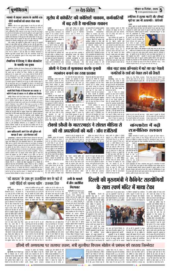 Purnviram Bhopal Edition 10 December Page: 5 Purnviram Bhopal Edition 10 December Go To Page: Page 1Page 2Page 3Page 4Page 5Page 6Page 7Page 8 × Purnviram Bhopal Edition 10 December 12345678 << First << 4 5 6 >> Last >> 12345678