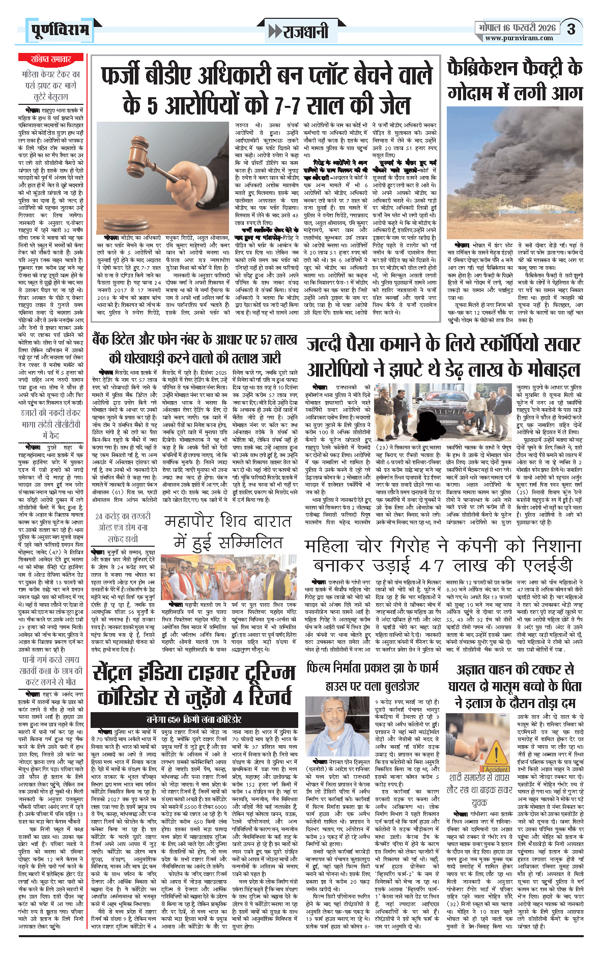 Purnviram Bhopal Edition 16 February 2026 Page: 3