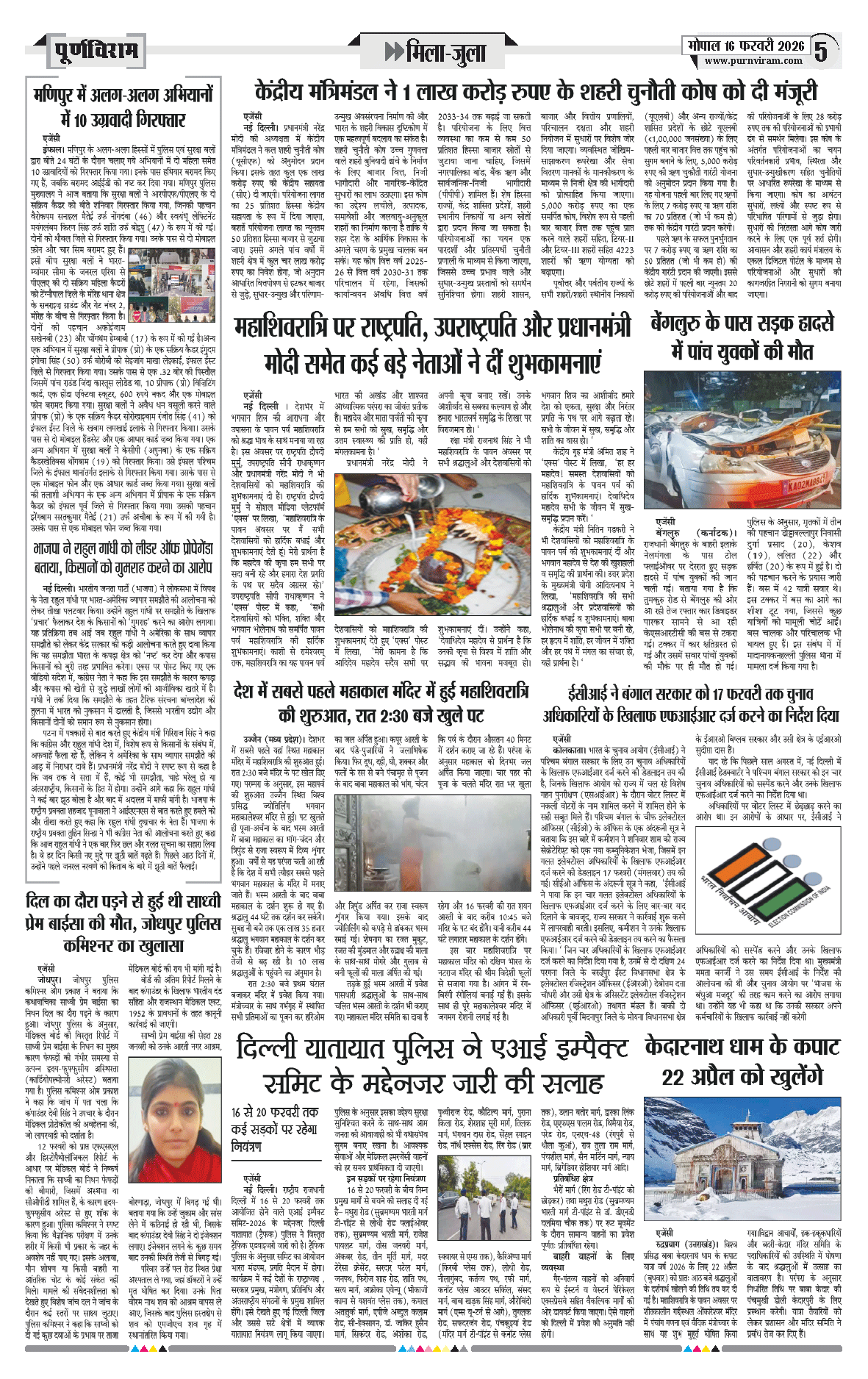 Purnviram Bhopal Edition 16 February 2026 Page: 5
