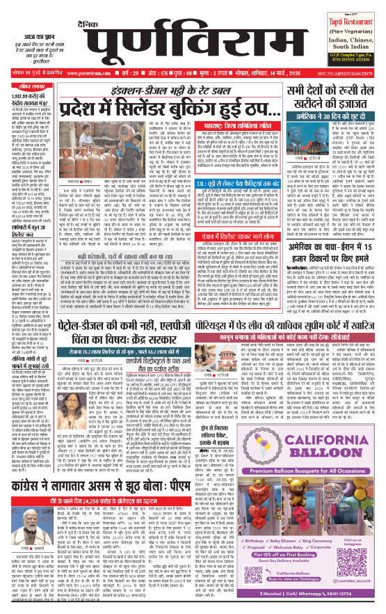 Purnviram Bhopal Edition14 March 2026 Purnviram Bhopal Edition14 March 2026 Go To Page: Page 1Page 2Page 3Page 4Page 5Page 6Page 7Page 8 × Purnviram Bhopal Edition14 March 2026 12345678 << First << 1 2 3 >> Last >> 12345678