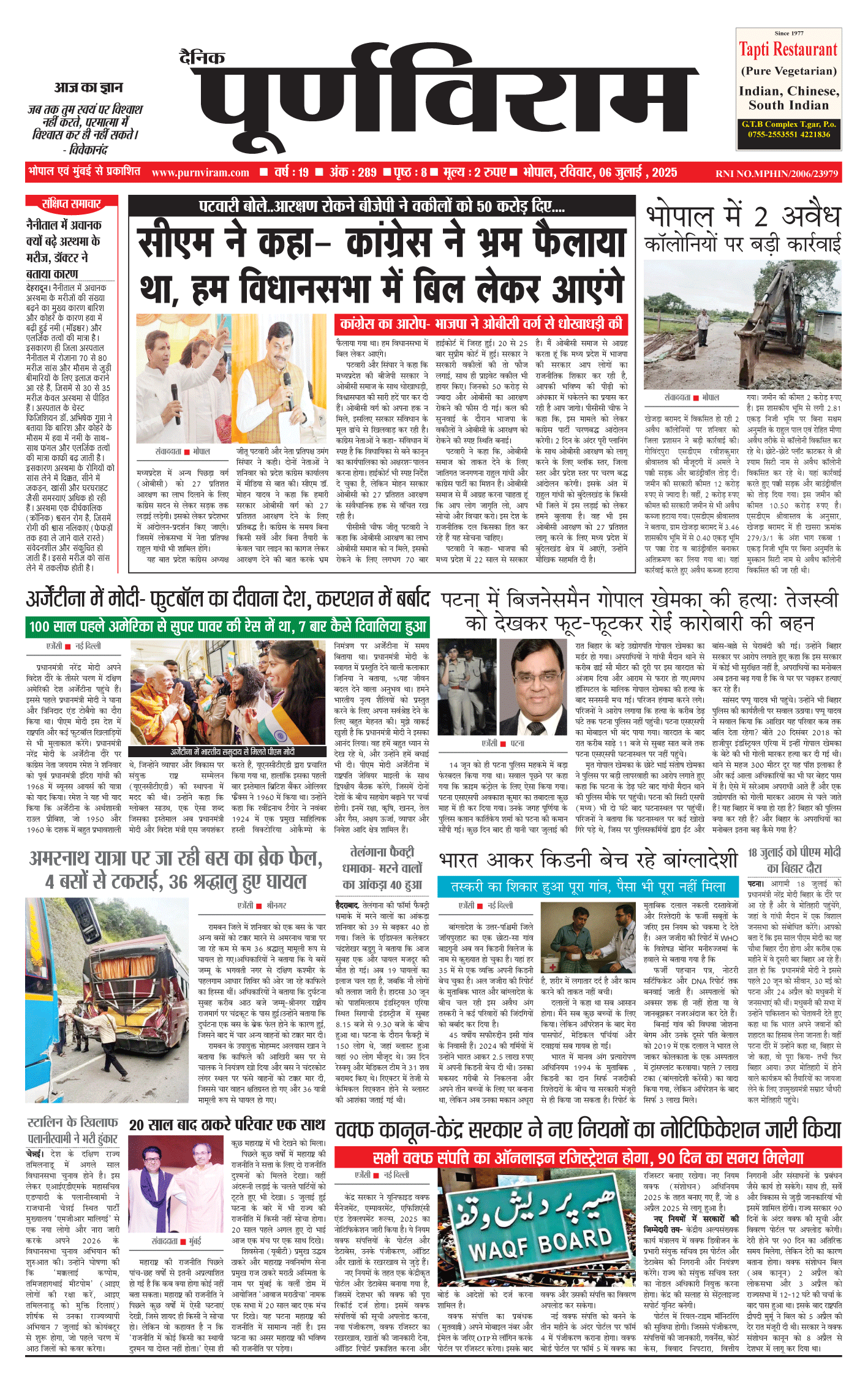Purnviram Bhopal Edition 6 July 2025