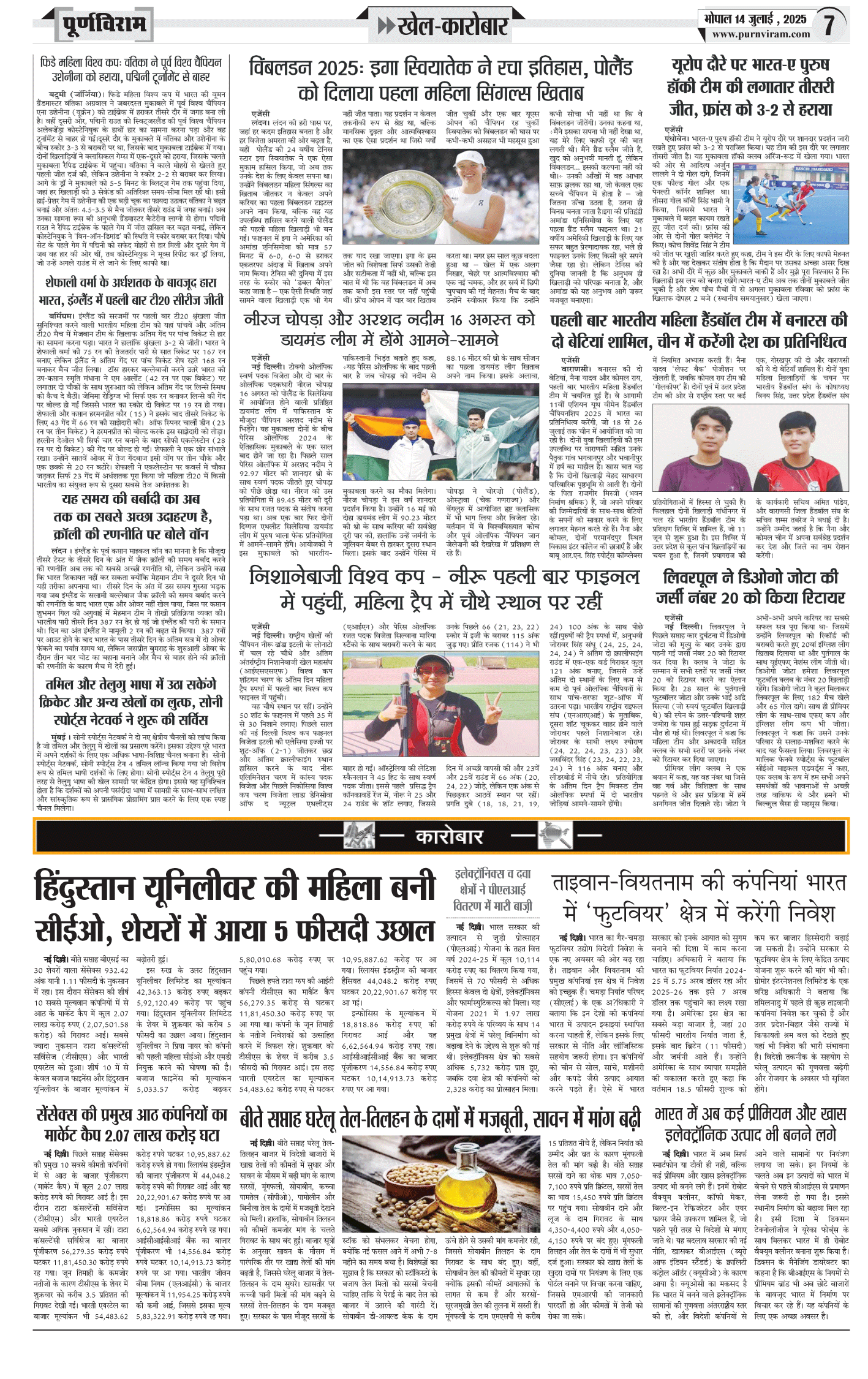 Purnviram Bhopal Edition 14 July 2025 Page: 7