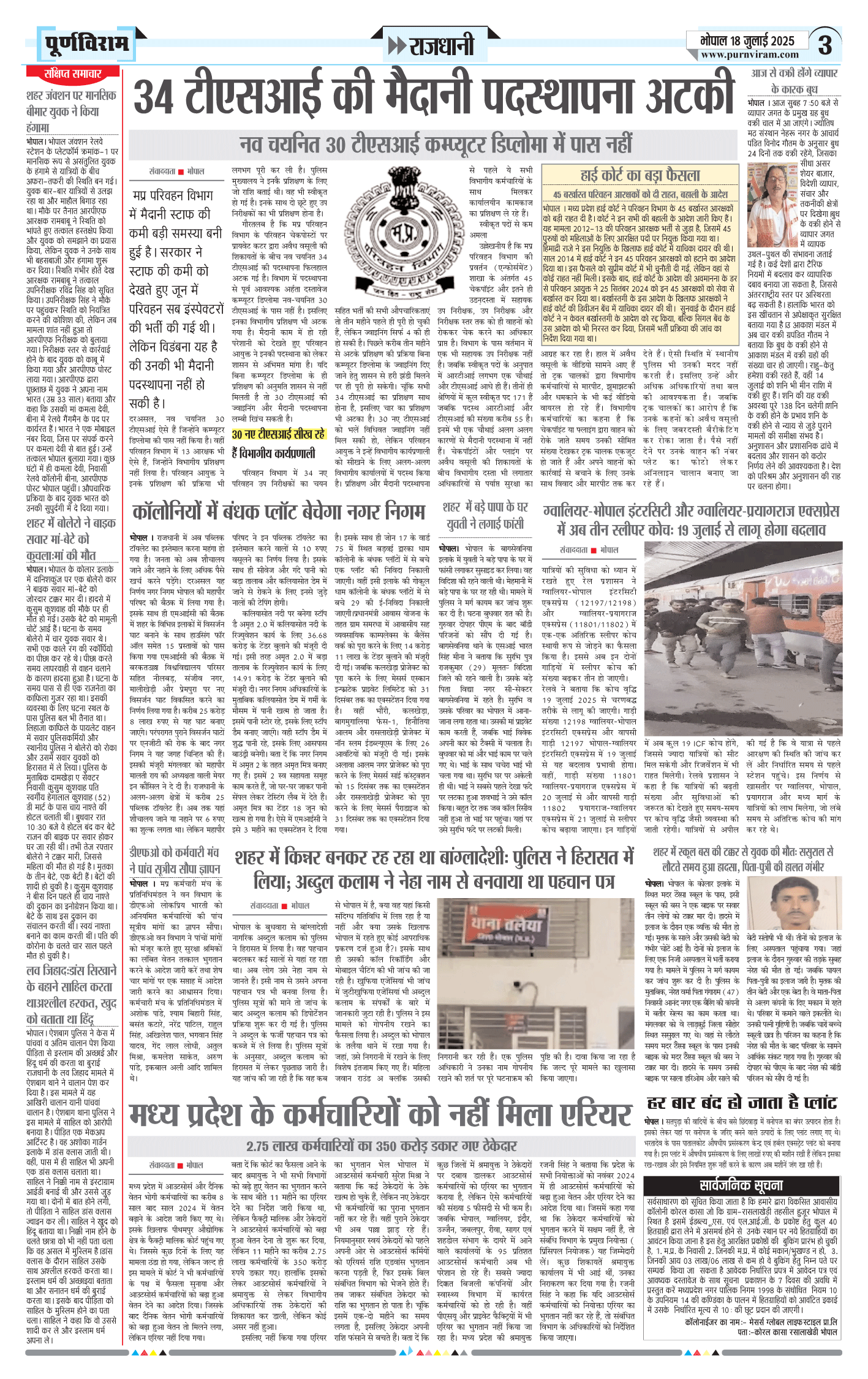 Purnviram Bhopal Edition 18 July 2025 Page: 3