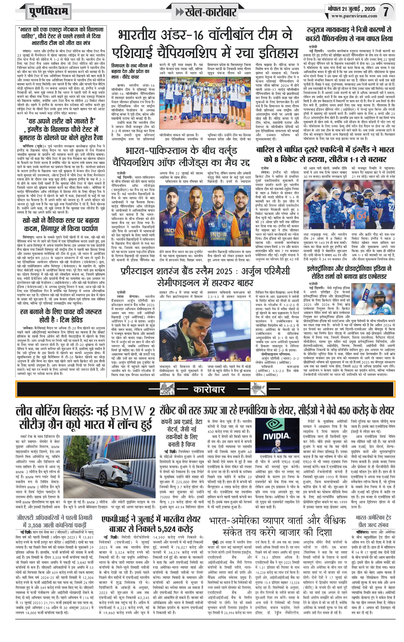 Purnviram Bhopal Edition 21 July 2025 Page: 7