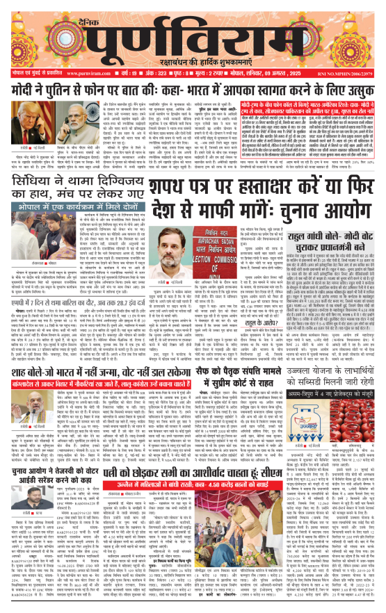 Purnviram Bhopal Edition 09 August 2025 Purnviram Bhopal Edition 09 August 2025 Go To Page: Page 1Page 2Page 3Page 4Page 5Page 6Page 7Page 8 × Purnviram Bhopal Edition 09 August 2025 12345678 << First << 1 2 3 >> Last >> 12345678