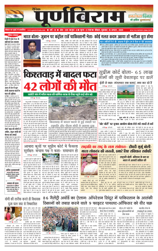 Purnviram Bhopal Edition 15 August 2025