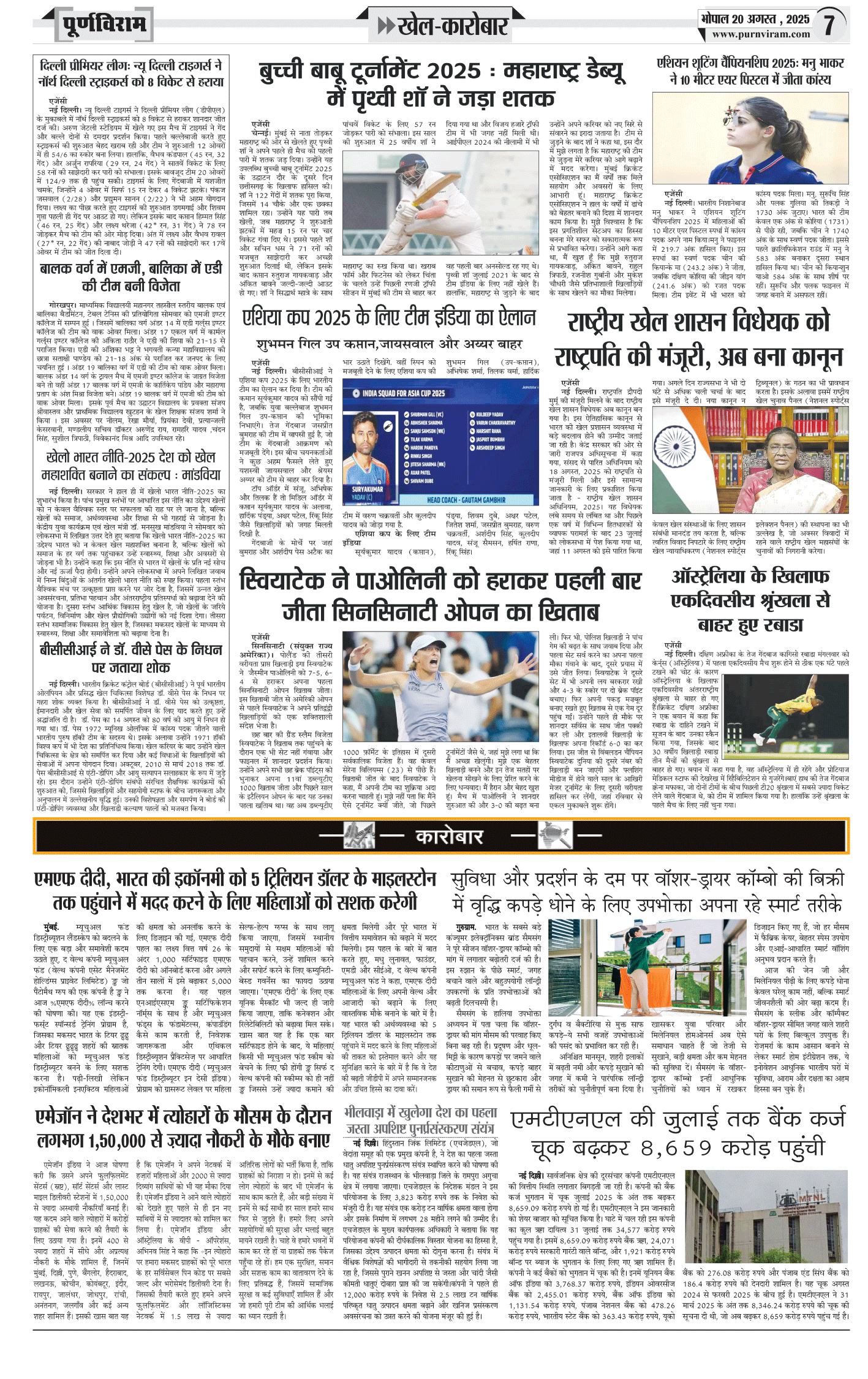Purnviram Bhopal Edition 20 August 2025 Page: 7