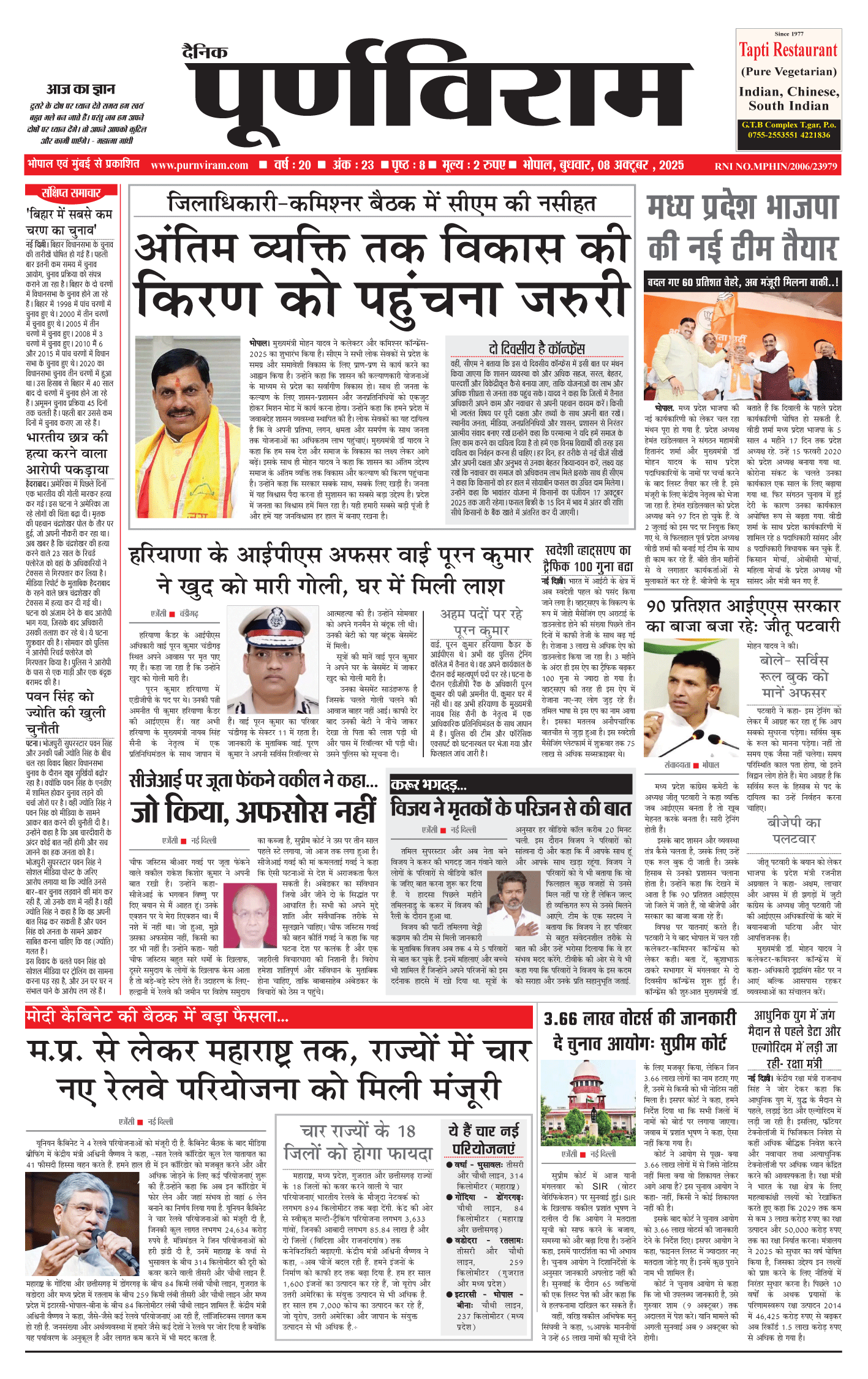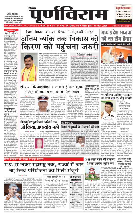 Purnviram Bhopal Edition 08 October 2025 Purnviram Bhopal Edition 08 October 2025 Go To Page: Page 1Page 2Page 3Page 4Page 5Page 6Page 7Page 8 × Purnviram Bhopal Edition 08 October 2025 12345678 << First << 1 2 3 >> Last >> 12345678