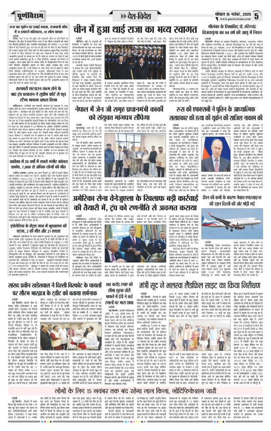 Purnviram Bhopal Edition 15 November Page: 5 Purnviram Bhopal Edition 15 November Go To Page: Page 1Page 2Page 3Page 4Page 5Page 6Page 7Page 8 × Purnviram Bhopal Edition 15 November 12345678 << First << 4 5 6 >> Last >> 12345678