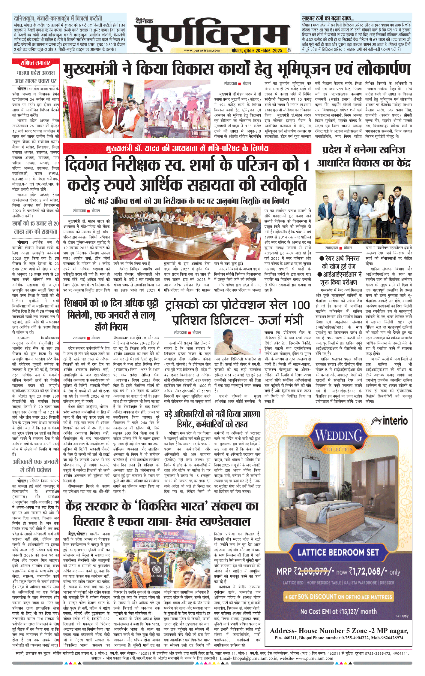 Purnviram Bhopal Edition 26 November Page: 8 Purnviram Bhopal Edition 26 November Go To Page: Page 1Page 2Page 3Page 4Page 5Page 6Page 7Page 8 × Purnviram Bhopal Edition 26 November 12345678 << First << 6 7 8 >> Last >> 12345678