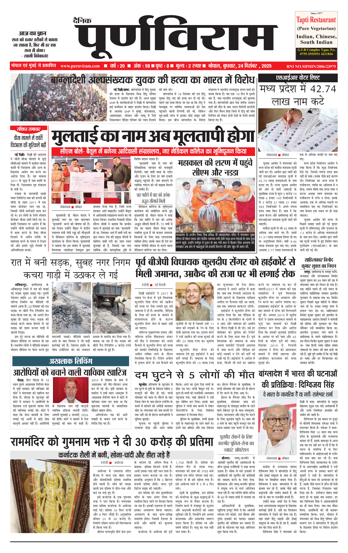 Purnviram Bhopal Edition 24 December Purnviram Bhopal Edition 24 December Go To Page: Page 1Page 2Page 3Page 4Page 5Page 6Page 7Page 8 × Purnviram Bhopal Edition 24 December 12345678 << First << 1 2 3 >> Last >> 12345678