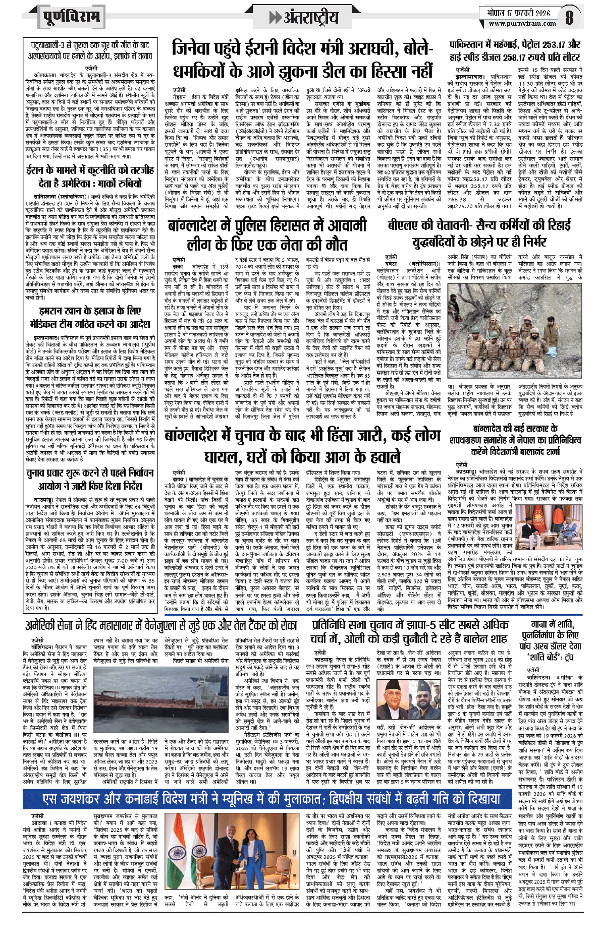 Purnviram Bhopal Edition 17 February 2026 Page: 8