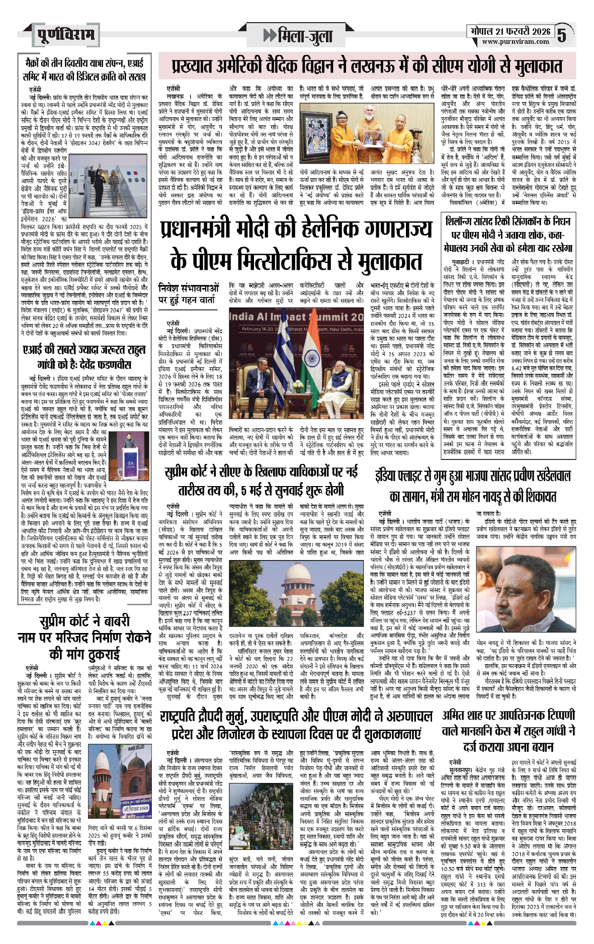 Purnviram Bhopal Edition 21 February 2026 Page: 5