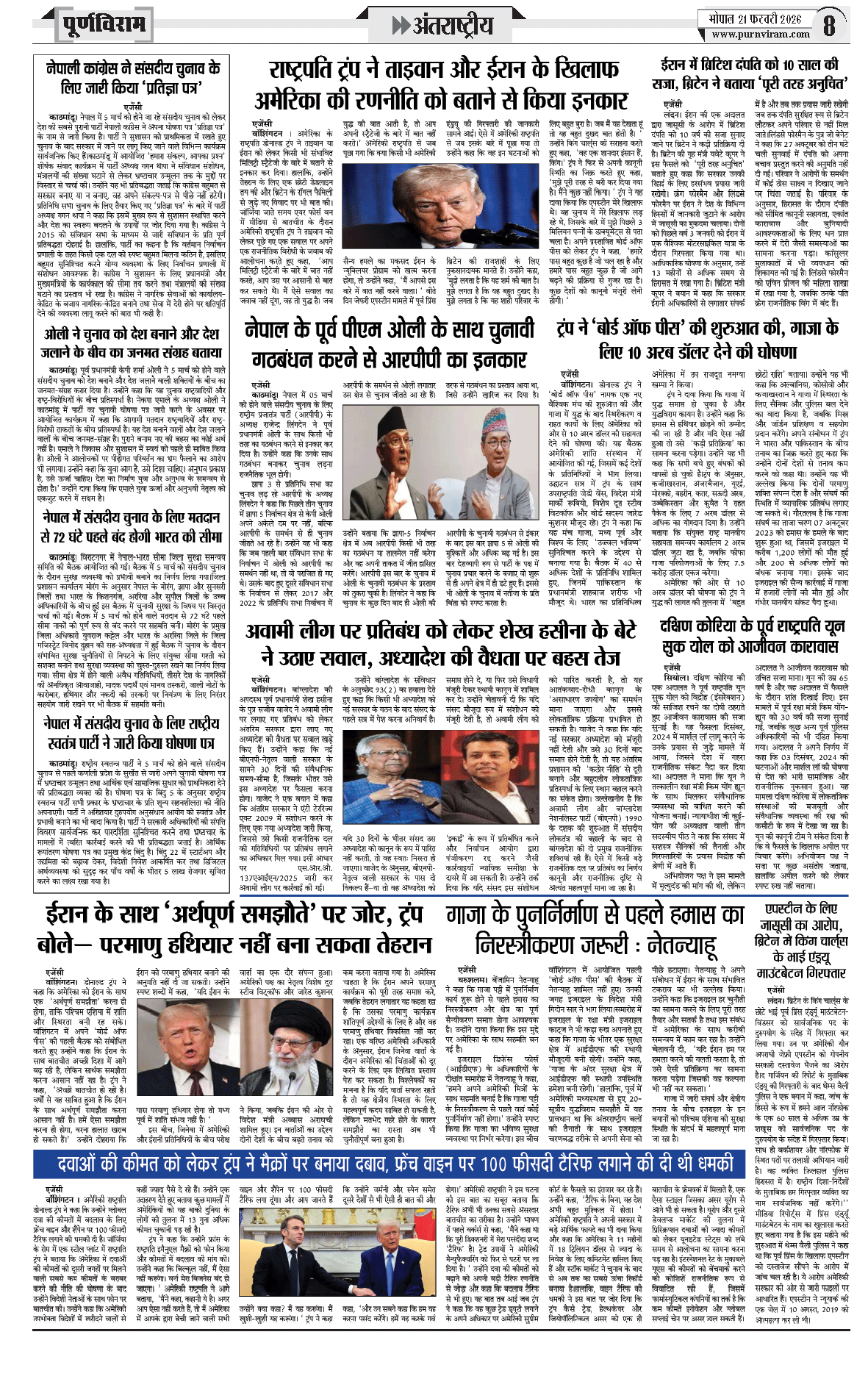 Purnviram Bhopal Edition 21 February 2026 Page: 8